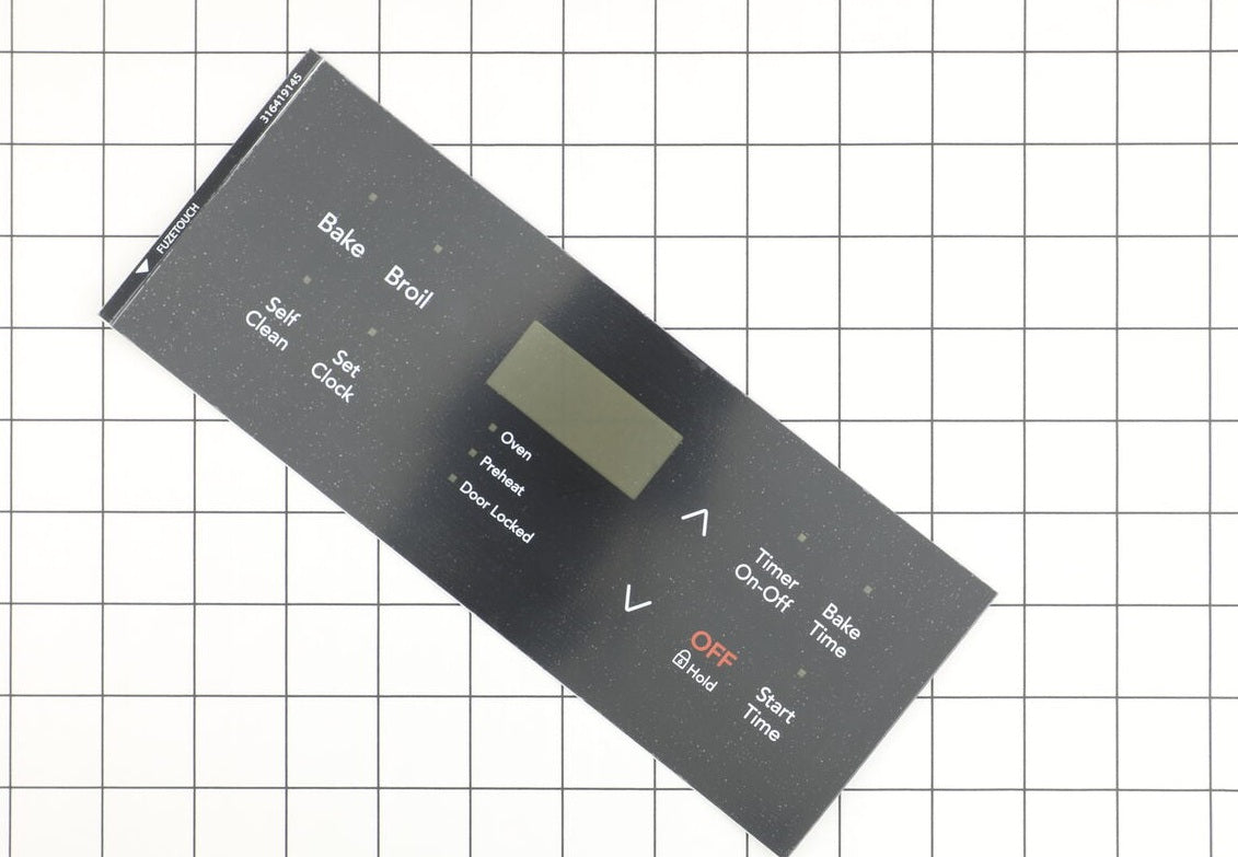 This oven control overlay (part number 316419700) is for ranges.Unplug the range before installing this part. Wear work gloves to protect your hands.
