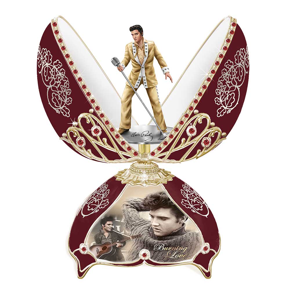 Experience Elvis Presley\'s thrilling energy in the glittering style of Peter Carl Faberge\'s dazzling masterpieces with the Elvis™ in Concert Music Box, available in a limited...