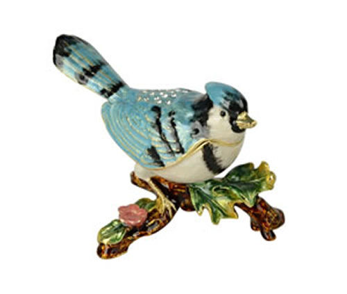 Blue Jay Bird Enamelled Treasures Trinket Box with Necklace