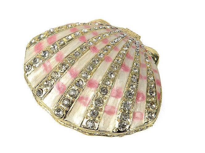Clam Shell Enamelled Treasures Trinket Box with Necklace