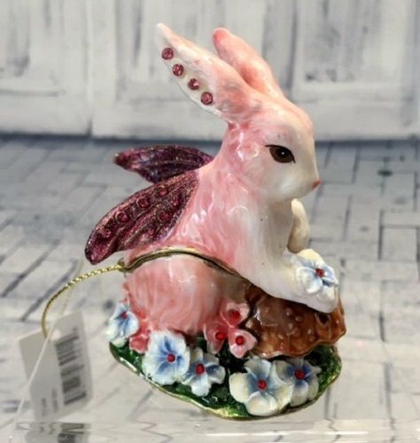 Fairy Pink Rabbit Enamelled Treasures Trinket Box with Necklace