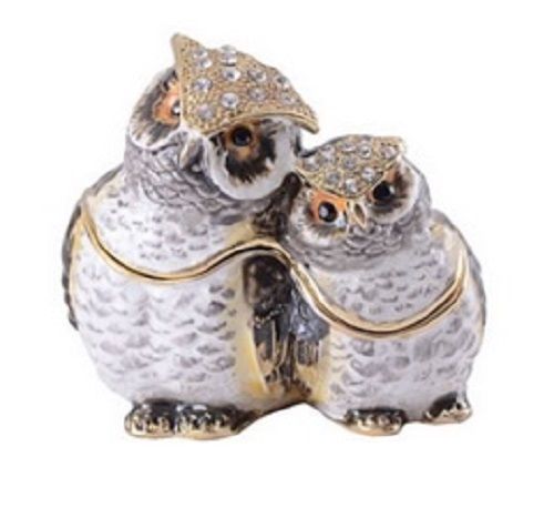 Mom and Baby Owl Enamelled Treasures Trinket Box with Necklace
