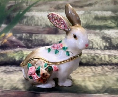 Rabbit Enamelled Treasures Trinket Box with Necklace