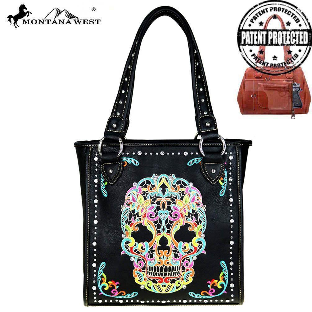 Montana West Sugar Skull Collection Concealed Handgun Satchel Don't worry if you don't have a gun, its a great storage compartment I'm Canadian we don't have...