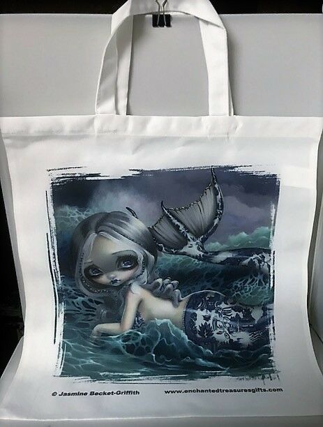 Porcelina Blue Willow Mermaid Canvas Tote Bag 15 inches by 14 inches A collection of Jasmine Becket-Griffith Strangeling Bags in a number of styles and featuring...