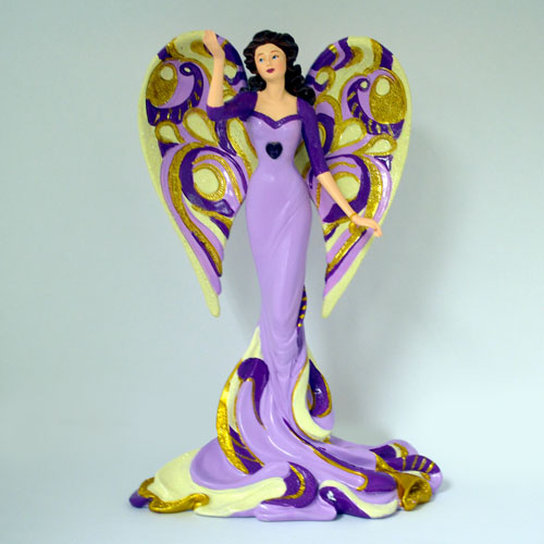 This limited-edition figurine collection is the first-ever to be handcrafted in The Hamilton Collection's exclusive Textura Glacé art style. Working in artist's resin and using varied hand-etched patterns, metallic golden sweeps and subtle, hand-painted hues, Master Artisans have been able to invoke a dazzling array of light and color in the wings and gowns of each angel figurine in the collection. A hand-set, genuine Swarovski® crystal shimmers at the heart of each angel, sparkling with symbolic colors reflecting their unique emotional qualities.