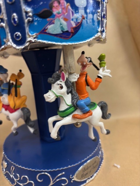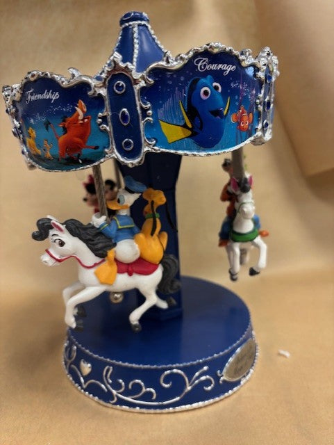 The Believe in Magic Disney Carousel from The Bradford Exchange is a beautifully crafted collectible that brings beloved Disney characters to life in a whimsical carousel design. Expertly sculpted and hand-painted, it features detailed character figures, enchanting colors, and charming movement. A delightful centerpiece for Disney fans and collectors.