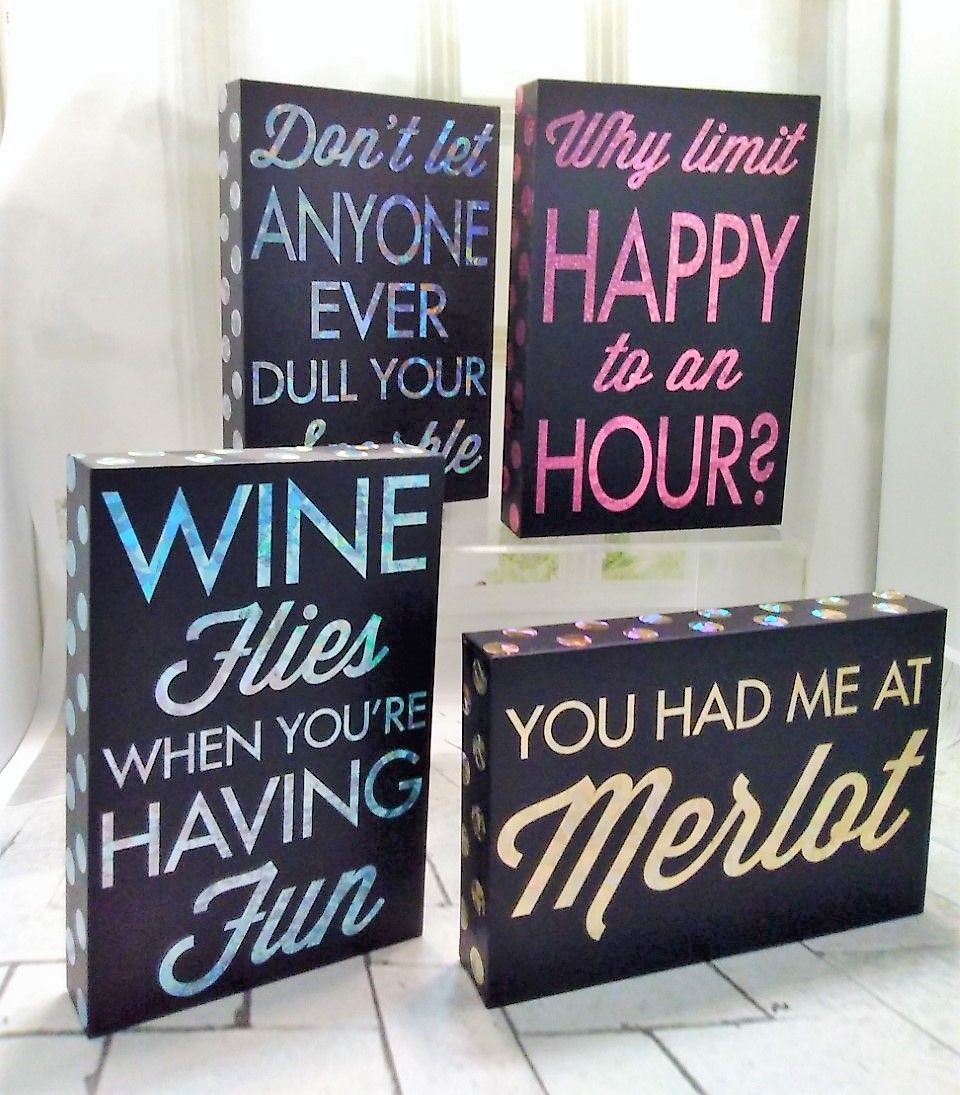 Set of 4 Wine and Friends Wall Plaque s - Cocktails - Fabulous Hiccup Girls