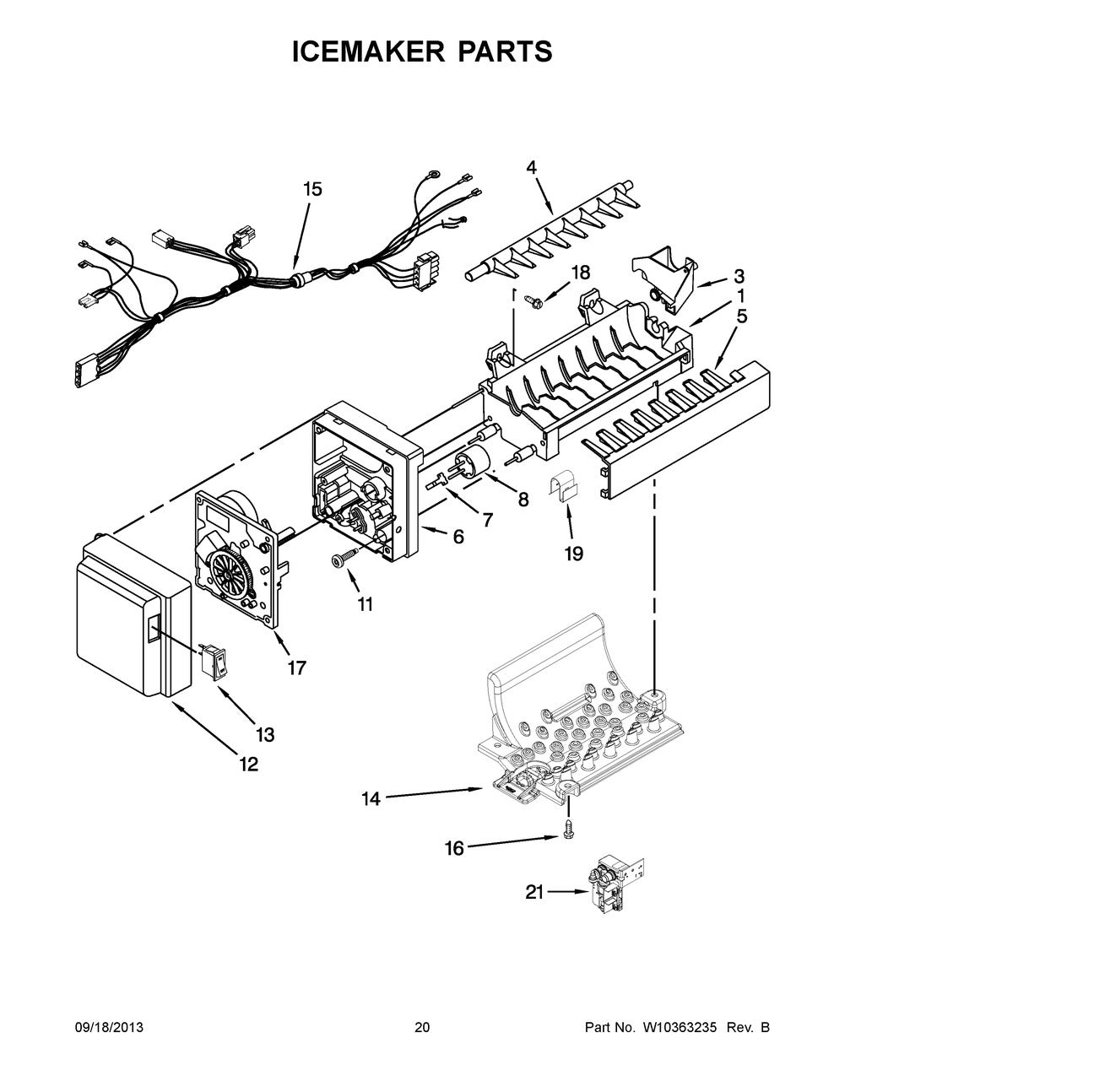 Leaking water, water will not dispense, ice maker does not make ice, ice maker does not dispense ice.